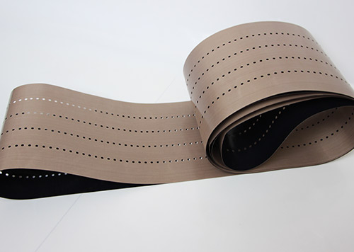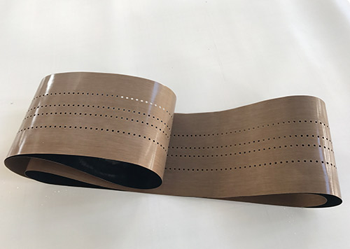 串焊機打孔特氟龍輸送帶采用高強度玻璃纖維紗或凱芙拉(芳綸)經(jīng)圓織設(shè)備編織筒狀織物,采用工藝技術(shù)涂覆特氟龍樹脂(PTFE)制成的。它克服以往輸送帶接口連接處易斷裂的現(xiàn)象。連接處周長不等而造成走行穩(wěn)定性差、跑偏現(xiàn)象。無縫皮帶運轉(zhuǎn)壽命比任何接法的特氟龍輸送帶壽命都要長3倍以上。