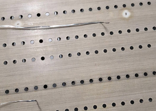 如圖兩排孔的串焊機(jī)皮帶孔規(guī)格正常寬為:0.5cm,孔長(zhǎng):1.2cm