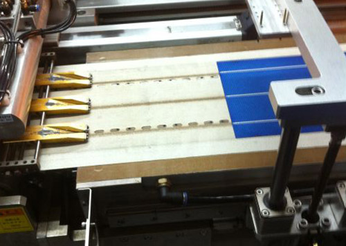 如圖兩排孔的串焊機皮帶孔規(guī)格正常寬為:0.5cm,孔長:1.2cm