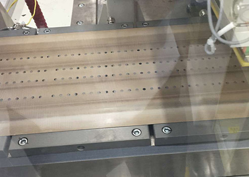 皮帶配合儀器根據(jù)客戶的需求在皮帶上打出客戶所需要的孔徑。