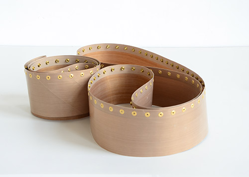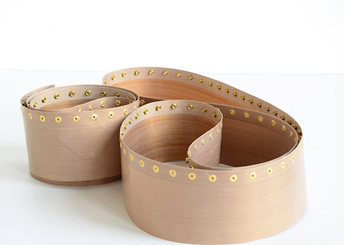 無縫帶又稱無接縫粘合機帶,英文名稱seamless fusing machine belt,采用高強度玻璃纖維紗及凱芙拉(芳綸)經園織設備編織筒狀織物,采用工藝技術涂覆特氟龍樹脂(PTFE)制成的。特點